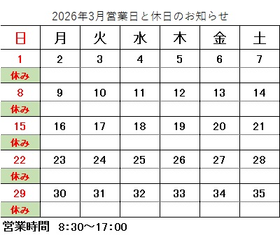 2026年3月営業日